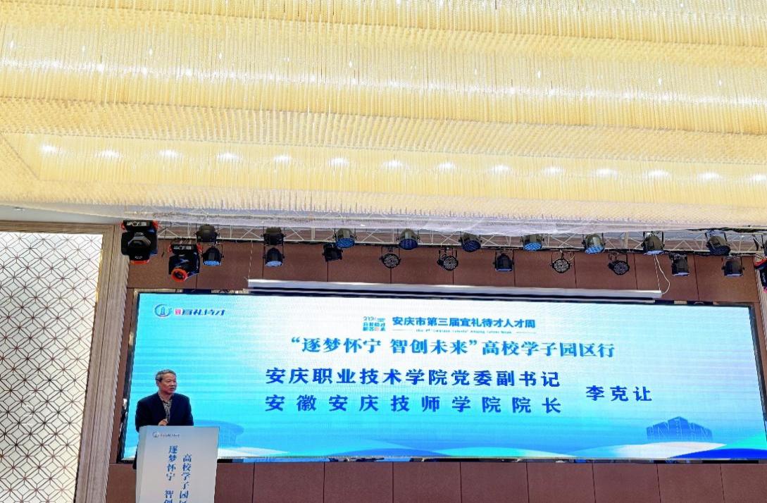 11月10日上午,安慶市第三屆“宜禮待才”人才周活動(dòng)—“逐夢(mèng)懷寧 智創(chuàng )未來(lái)”學(xué)校學(xué)子園區行在懷寧縣成功舉辦。此次活動(dòng)邀請安徽理工大學(xué)、安徽工程大學(xué)、安慶師范大學(xué)、安慶職業(yè)技術(shù)學(xué)院、安徽安慶技師學(xué)院等高校院所近百名領(lǐng)導專(zhuān)家和2025屆畢業(yè)生到來(lái)。懷寧縣縣委書(shū)記余學(xué)峰,縣委常委、組織部部長(cháng)祝鶴鳴,以及其他有關(guān)負責同志出席活動(dòng)。