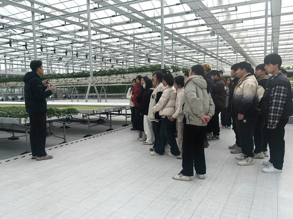 在無(wú)土栽培區,學(xué)生們被眼前現代化的種植設備所吸引。該公司技術(shù)人員、安慶職院優(yōu)秀畢業(yè)生——王勝蘭,向學(xué)弟學(xué)妹們展示了無(wú)土栽培與養護管理技術(shù)和對水肥一體化系統。她詳細解說(shuō)了無(wú)土栽培的原理、技術(shù)特點(diǎn)、水肥管理與日常養護的管理方法,現場(chǎng)演示了無(wú)土栽培作物的生長(cháng)過(guò)程,并介紹了水肥一體化系統的工作原理、操作流程、肥料配制的原理與方法以及在現代農業(yè)中的應用優(yōu)勢。學(xué)生們認真聆聽(tīng),積極提問(wèn),對無(wú)土栽培技術(shù)的先進(jìn)性有了更深入的了解;感受到了水肥一體化技術(shù)在提高作物產(chǎn)量、節約水資源方面的顯著(zhù)效果。不僅拓寬了學(xué)生們的專(zhuān)業(yè)知識面,也增強了他們對未來(lái)農業(yè)可持續發(fā)展的信心。