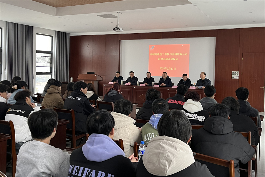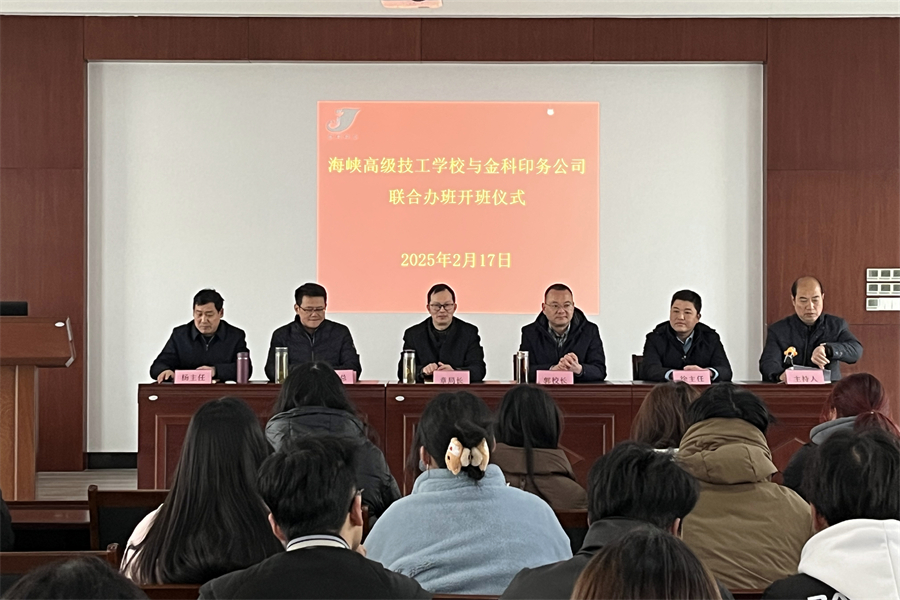 2月17日,桐城海峽高級技工學(xué)校與安徽金科印務(wù)公司“塑包產(chǎn)業(yè)高技能人才訂單培養(第二期)開(kāi)班式”,在安徽金科印務(wù)公司隆重舉行。桐城市人社局副局長(cháng)章文斌,桐城海峽高級技工學(xué)校校長(cháng)郭昌盛,安徽金科印務(wù)公司總經(jīng)理何瓊,以及市企業(yè)服務(wù)中心、市職業(yè)鑒定中心相關(guān)負責人出席開(kāi)班式。桐城海峽高級技工學(xué)校24高級現代服務(wù)、24高級電商班全體學(xué)生參加開(kāi)班儀式。開(kāi)班式由安徽金科印務(wù)公司副總經(jīng)理汪德全主持。