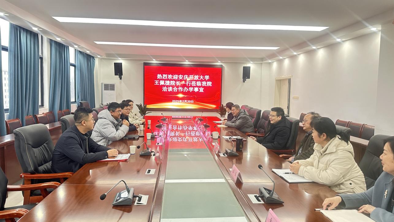 2025年2月20日上午,安慶開(kāi)放大學(xué)黨委副書(shū)記、校長(cháng)王佩捷,辦公室主任李玲、開(kāi)放教育學(xué)院院長(cháng)楊小軍、副院長(cháng)劉玄一行蒞臨安徽安慶技師學(xué)院,就兩校深度合作展開(kāi)洽談。學(xué)院黨委副書(shū)記、院長(cháng)徐英武攜院領(lǐng)導班子成員及系部負責同志熱情接待王佩捷校長(cháng)一行。