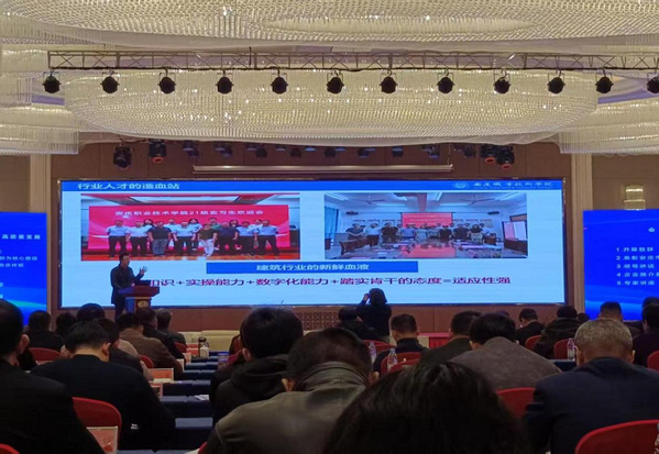 會(huì )上,建筑工程學(xué)院金飛老師代表學(xué)院做題為《產(chǎn)教融合謀發(fā)展,校企協(xié)同育英才》的推介報告,他從“我們有什么?我們能做什么?”兩方面,介紹了該校建筑工程學(xué)院的專(zhuān)業(yè)特色、團隊優(yōu)勢和實(shí)訓條件,以及該院如何優(yōu)先為本地行業(yè)企業(yè)提供人才支撐,滿(mǎn)足行業(yè)企業(yè)不同培訓需求,以及校企聯(lián)合開(kāi)展新技術(shù)新工法攻關(guān)等。金飛老師的推介與交流,得到與會(huì )企業(yè)的高度關(guān)注和積極回應。