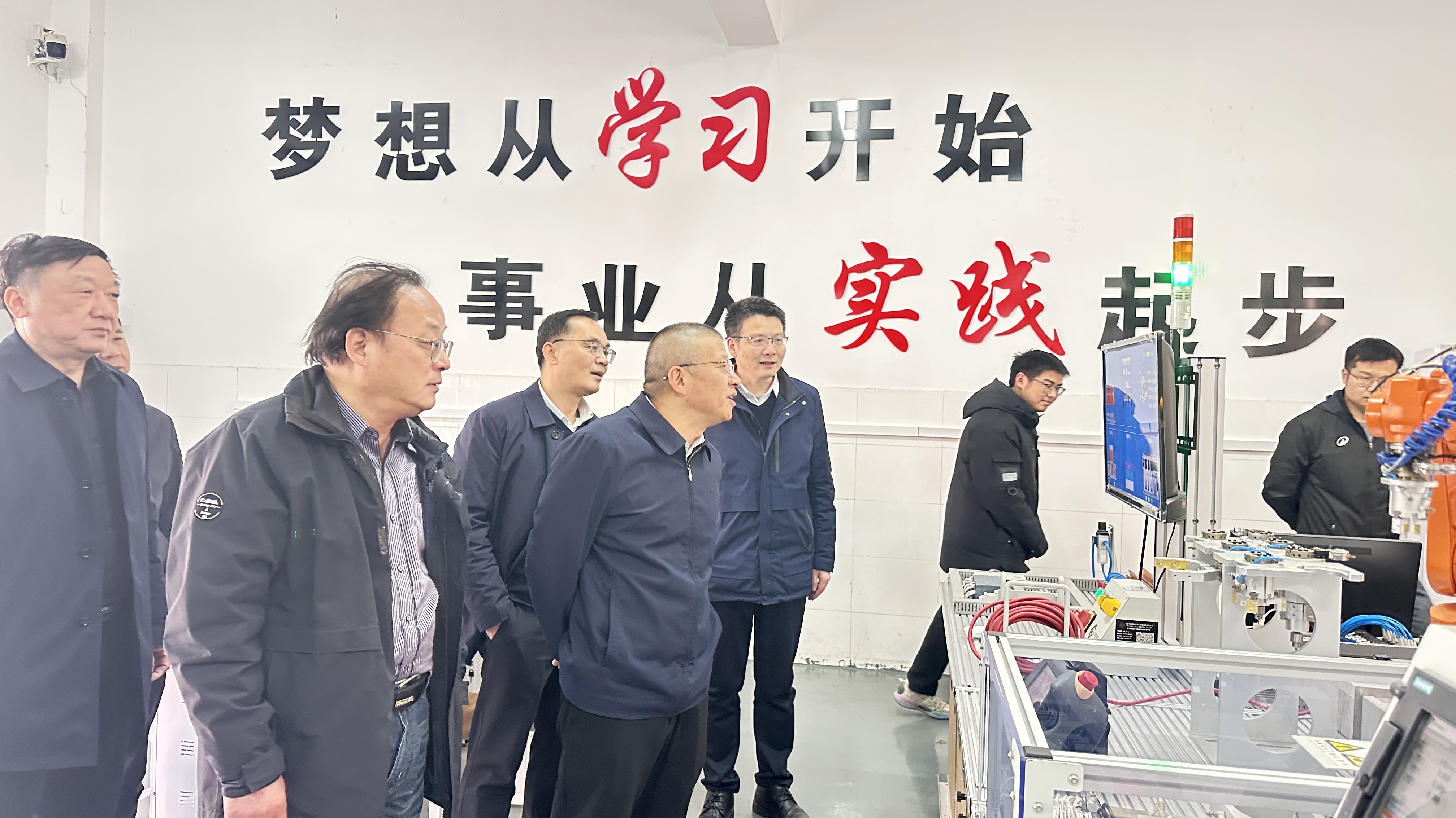 一行實(shí)地參觀(guān)了學(xué)院的實(shí)訓基地?在參觀(guān)過(guò)程中,徐英武院長(cháng)詳細介紹了學(xué)院相關(guān)專(zhuān)業(yè)建設和實(shí)訓室建設情況?近年來(lái),學(xué)院緊密結合安慶地方產(chǎn)業(yè)高質(zhì)量發(fā)展對人才的需求,深入開(kāi)展校企合作,以專(zhuān)業(yè)盯著(zhù)產(chǎn)業(yè)變、教學(xué)圍著(zhù)生產(chǎn)轉、學(xué)校跟著(zhù)園區建的思路,開(kāi)展教學(xué)活動(dòng)?目前,學(xué)院有36個(gè)在招專(zhuān)業(yè),在校學(xué)生3200余人,擁有一支140余人的教師隊伍,建有實(shí)訓中心39個(gè)、實(shí)訓設備3000多臺套?學(xué)院聚焦安慶首位產(chǎn)業(yè),先后與安徽環(huán)新集團、安徽奇瑞集團、江淮汽車(chē)、振宜汽車(chē)、中船柴油機公司等十余家本地企業(yè)開(kāi)展技能人才培訓,通過(guò)聯(lián)合招生、共同培養、定向就業(yè)的方式,為本地企業(yè)輸送高質(zhì)量技能人才上千人?