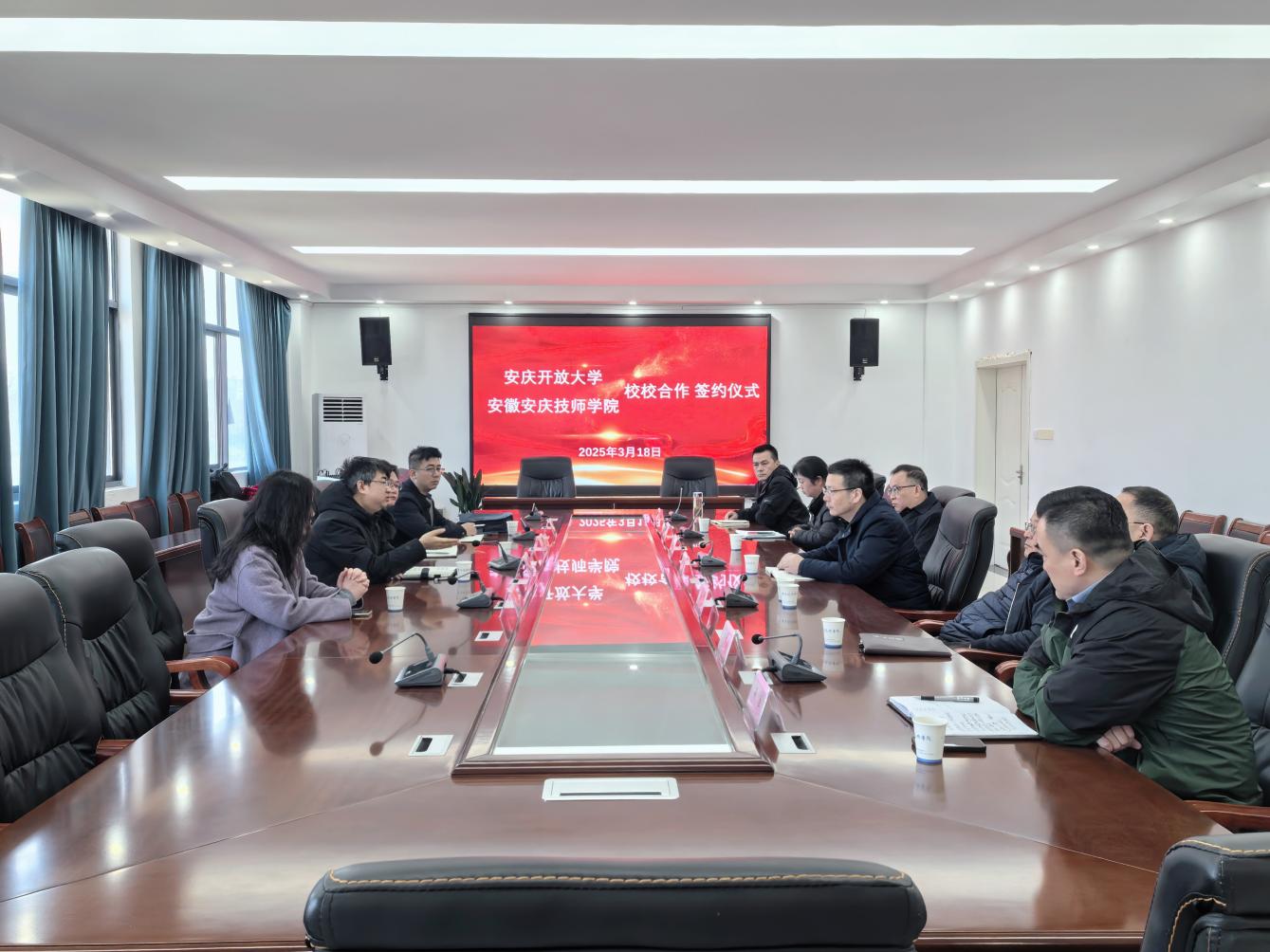 徐英武對安慶開(kāi)放大學(xué)一行表示熱烈歡迎。他表示,此次合作是兩校深入貫徹落實(shí)《教育強國建設規劃綱要(2024—2035年)》、服務(wù)安徽省“教育強省”的重要舉措。雙方將秉持“資源互通、成果共享”的原則,充分發(fā)揮各自?xún)?yōu)勢,深化信息互通,密切校校合作,積極開(kāi)展學(xué)歷提升教育,打造“技能+學(xué)歷”、“線(xiàn)上+線(xiàn)下”融合發(fā)展的教育生態(tài)圈,為學(xué)生提供更為全面、系統的教育。