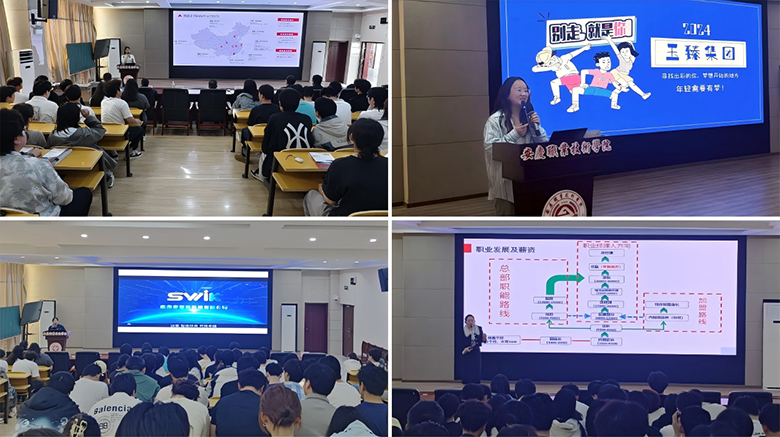 在宣講環(huán)節,企業(yè)代表依次登臺,各展風(fēng)采,全方位、多維度地深入介紹公司成長(cháng)軌跡、職位空缺“地圖”及職業(yè)發(fā)展“上升通道”。訂單班企業(yè)安慶安暢網(wǎng)絡(luò )科技有限公司率先宣講,詳細介紹了公司發(fā)展愿景、崗位需求和工作環(huán)境,他們專(zhuān)注于公有云運維領(lǐng)域,并推出CTTP云計算技術(shù)人才發(fā)展計劃及選拔程序,計劃招聘30名云計算運維工程師;安徽玉臻科技集團聚焦技術(shù)服務(wù)崗位,提出100余人的招聘需求;安徽鄰幾便利店有限公司則瞄準新零售領(lǐng)域,提供了20個(gè)智慧物流與運營(yíng)管培生崗位;安徽思偉奇智能科技有限公司針對智能制造領(lǐng)域,提出了儲備干部的招聘方案;安慶南冥眾創(chuàng )動(dòng)畫(huà)制作有限公司以數字創(chuàng )意產(chǎn)業(yè)為核心,計劃招募30名動(dòng)畫(huà)設計與數字媒體領(lǐng)域的專(zhuān)業(yè)人才,其他企業(yè)專(zhuān)設招聘展位,進(jìn)行宣傳交流。