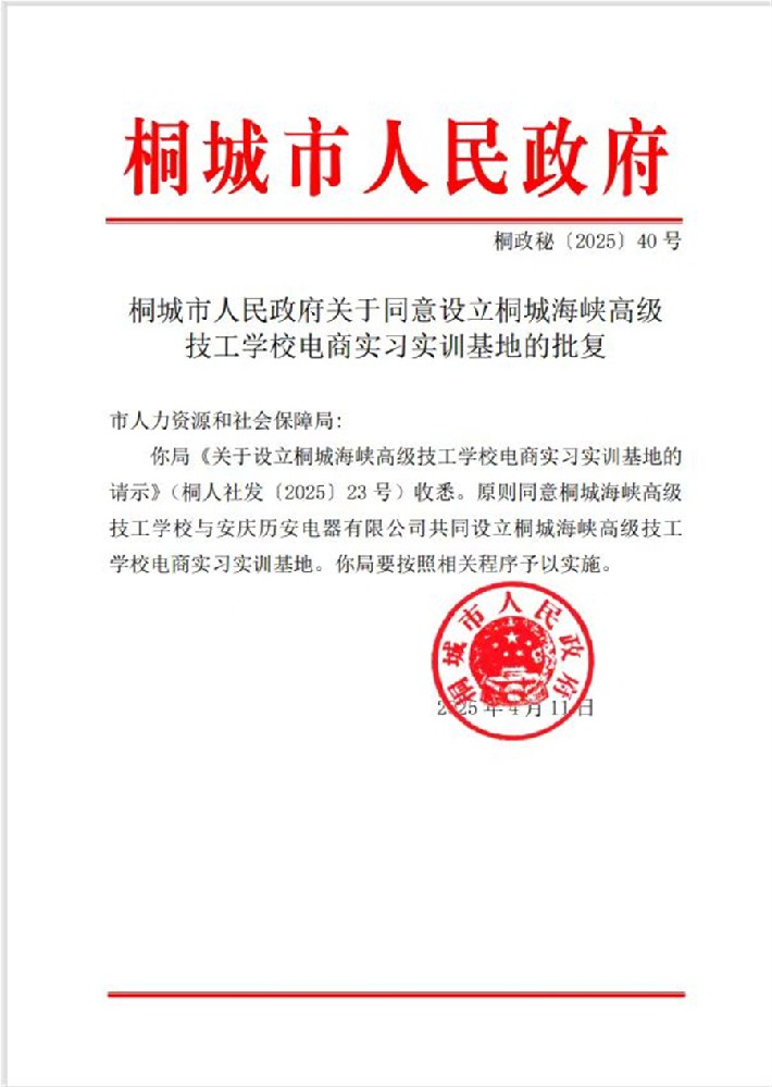 為進(jìn)一步優(yōu)化教育資源,落實(shí)桐城海峽高級技工學(xué)校電子商務(wù)專(zhuān)業(yè)人才培養目標,建立長(cháng)效的溝通、服務(wù)機制,做好學(xué)生實(shí)習實(shí)訓工作,促進(jìn)學(xué)生高質(zhì)量、多渠道開(kāi)展實(shí)習實(shí)訓就業(yè),桐城海峽高級技工學(xué)校與安慶歷安電器有限公司共同打造電商實(shí)習實(shí)訓基地。